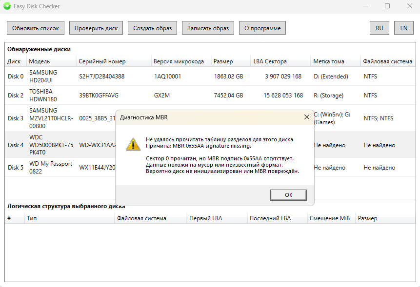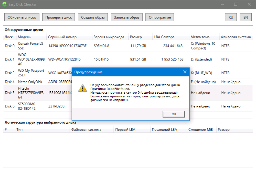 Easy Disk Checker - Простая программа для чтения и записи образов, диагностики и программного ремонта HDD, SSD USB флешек и карт памяти